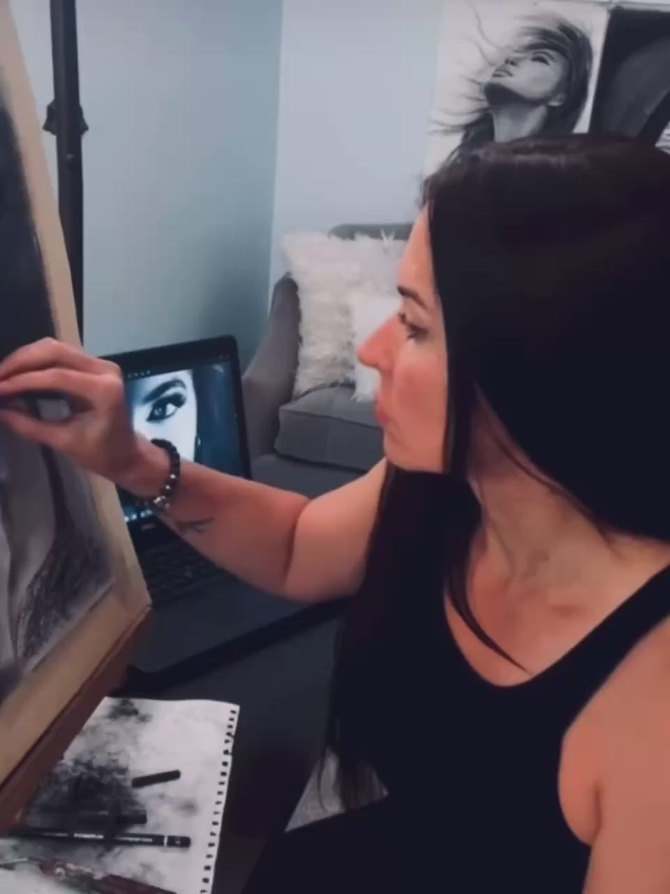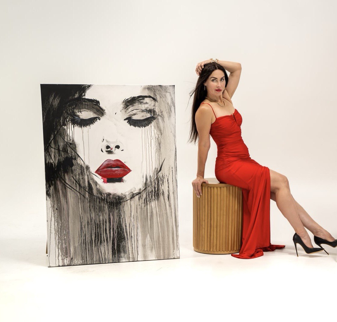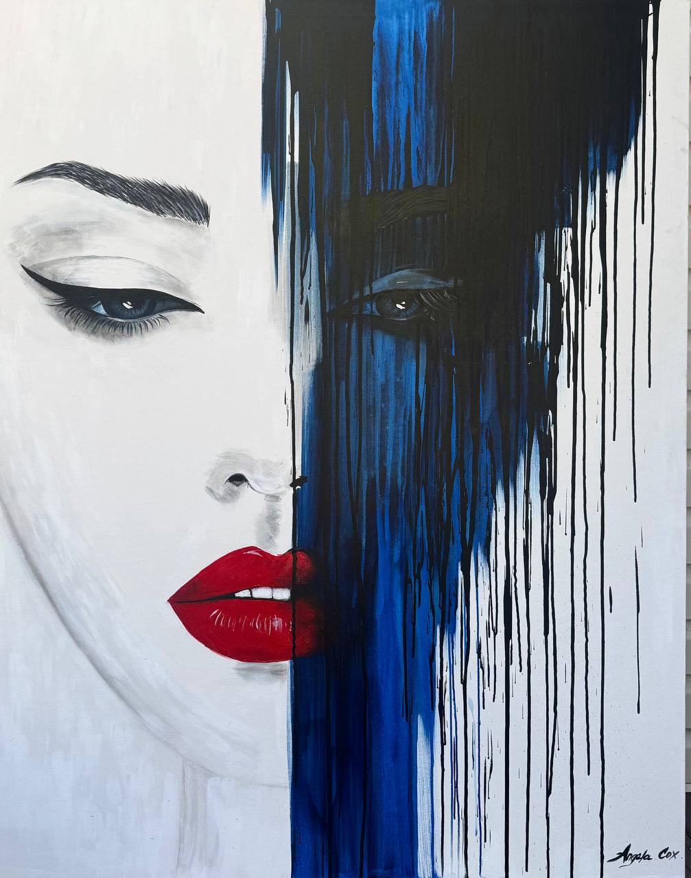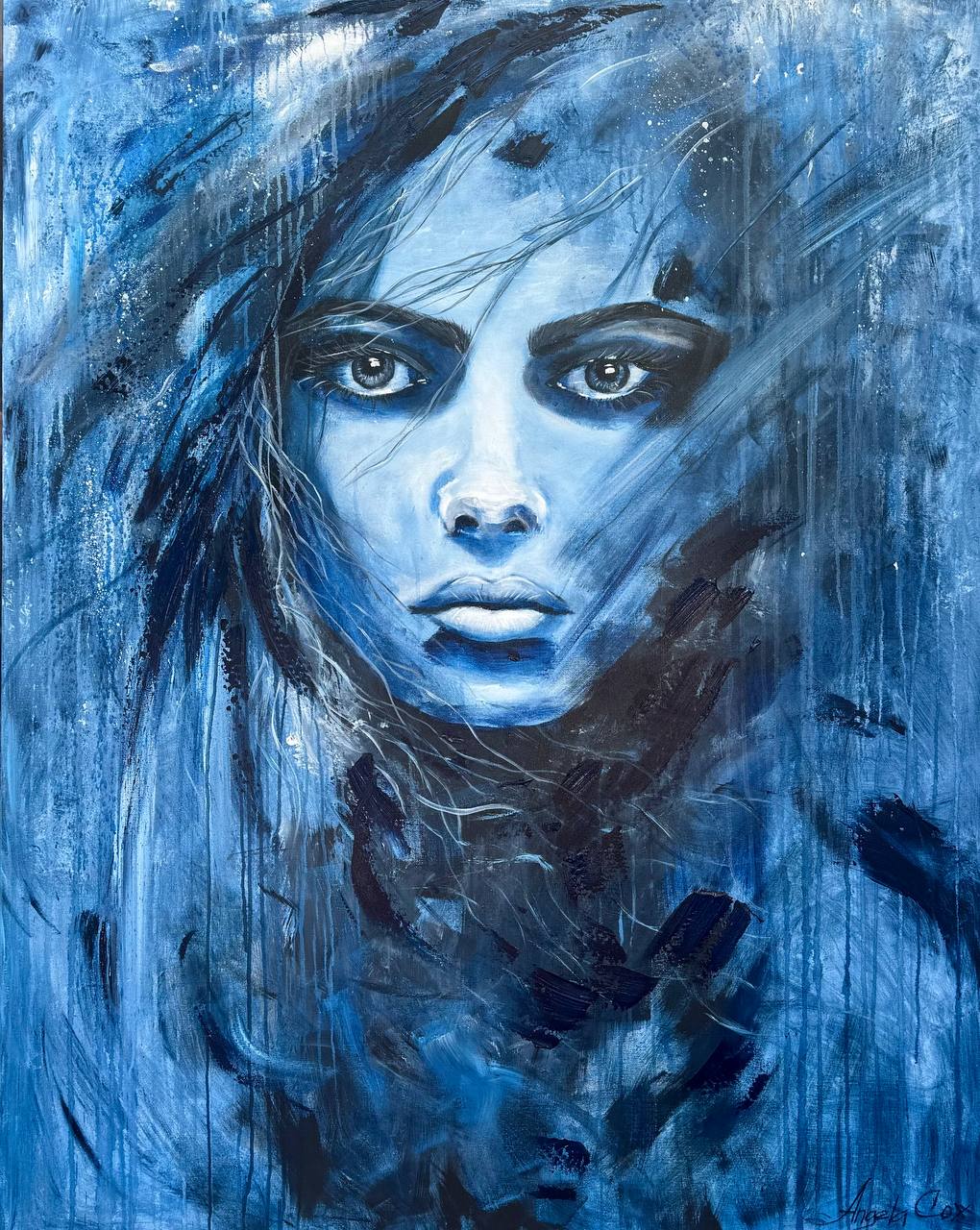 Original Acrylic Painting on stretch cotton canvas size 60 x48. “Her eyes carry the hush of the deep— a place where storms rest, where secrets sink like pearls, and time forgets to move."